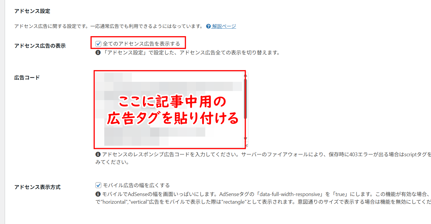4.アドセンス広告コードを設置・表示させる