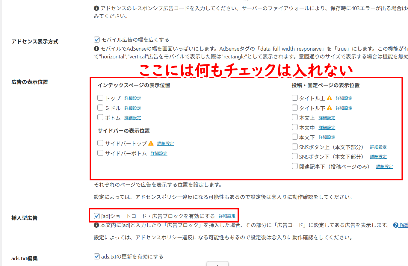 ただし、ショートコードの[ad]を入力するだけで広告が表示されるようになります。