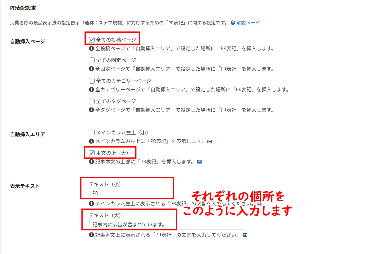 ついでにPR表記設定も行っておきましょう