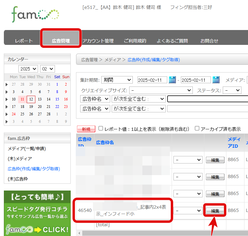 編集する広告タイプは「記事内2×4表示インフィード小」です!絶対に間違えないで!
