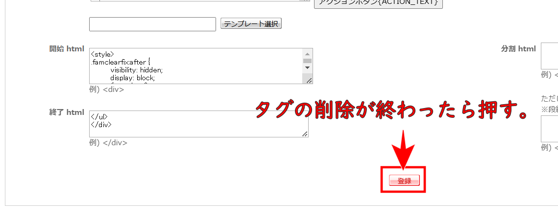 上記のタグを削除できたら、画面右下の登録ボタンを押せば作業完了です