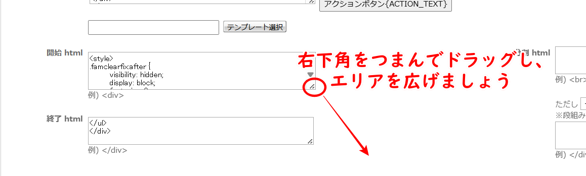 この後、画面が切り替わったら、「開始html」の個所を探します(その中のコードの一部を削除していきます)