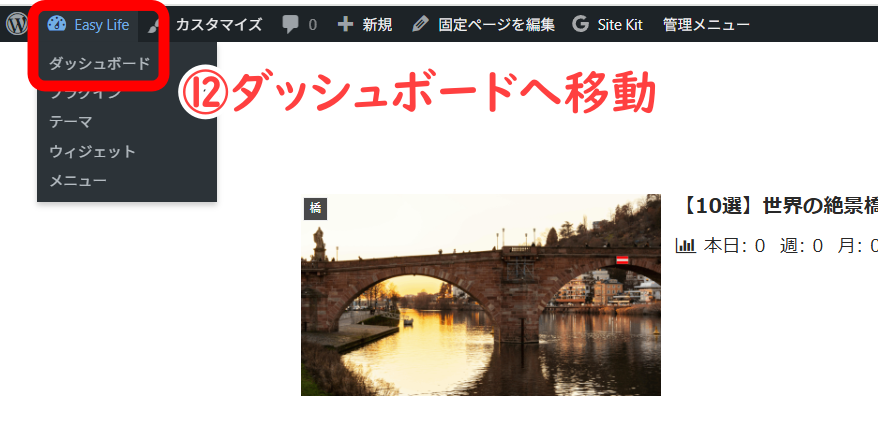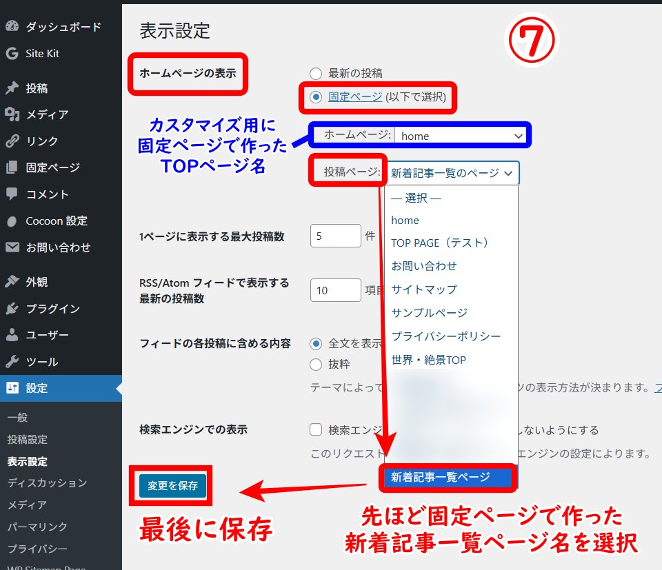 この後、ダッシュボードに戻り、【設定⇒表示設定】を開きます。