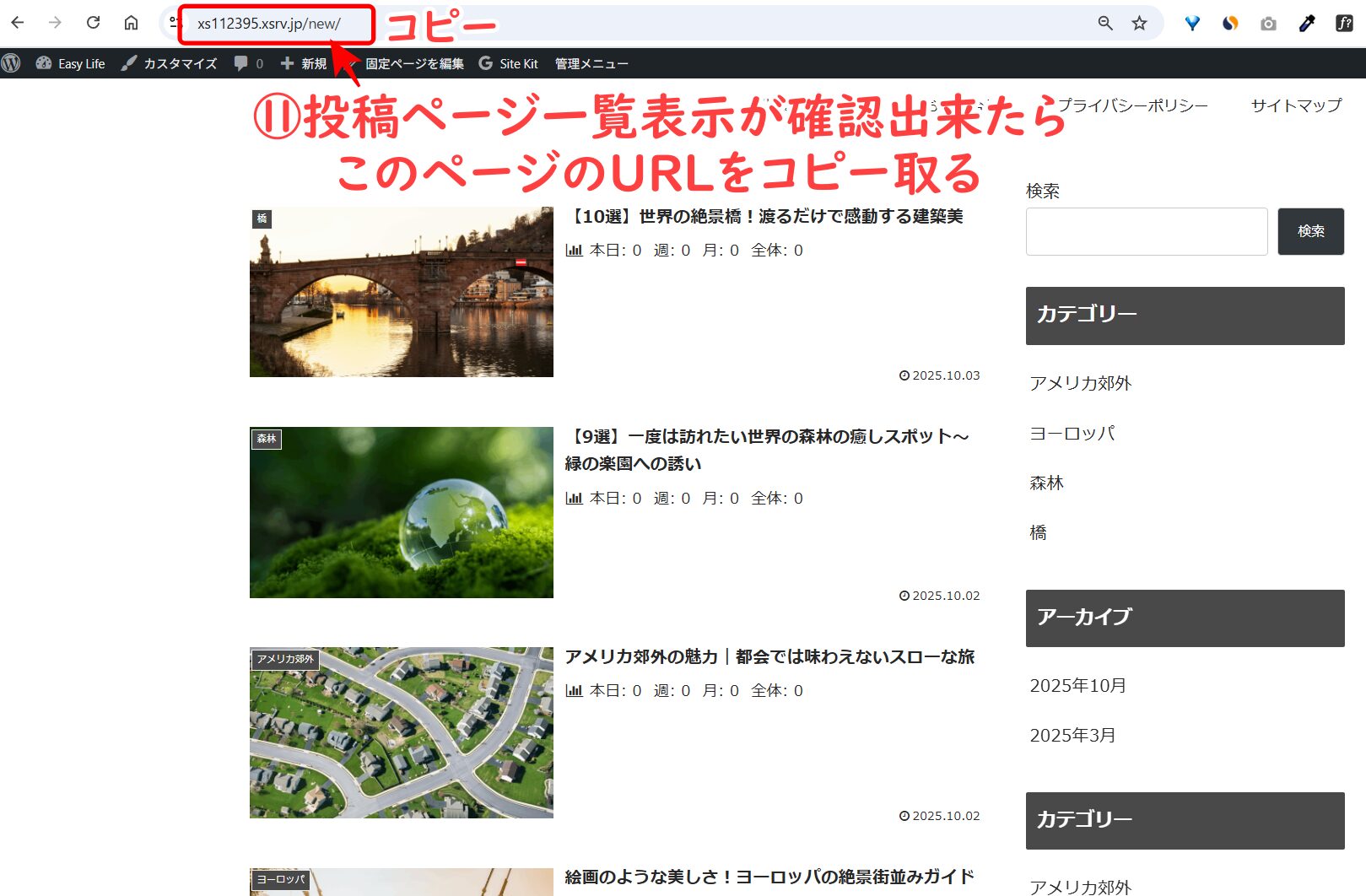 以下のように投稿ページの一覧(新着記事順)が表示されれば無事、完成です!
